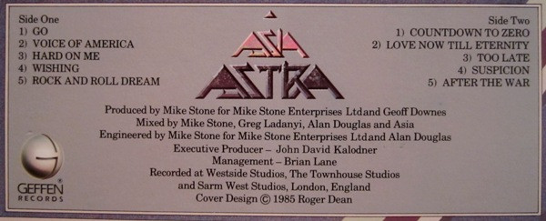 - Mixed By – Alan Douglas (2), Asia (2), Greg Ladanyi, Mike Stone