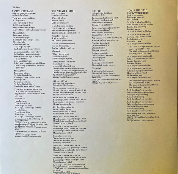 | A2 | Julio Iglesias– | Two Lovers | 4:23 |