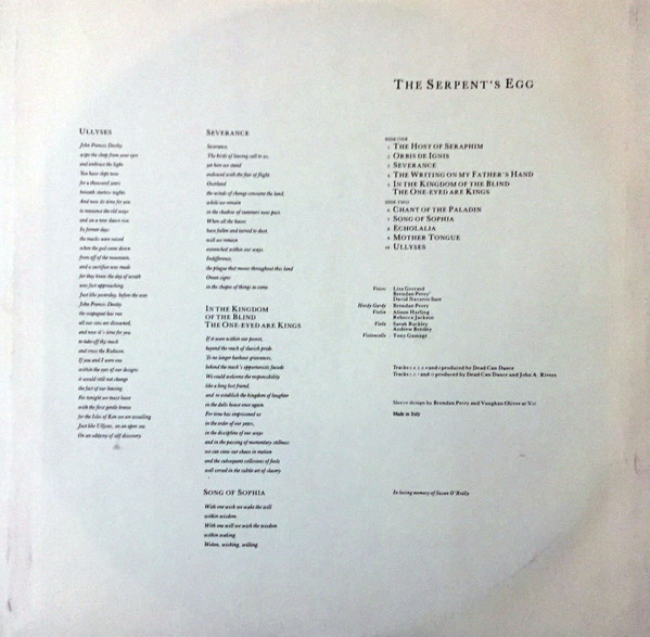 - Design [Sleeve] – Brendan Perry, Vaughan Oliver