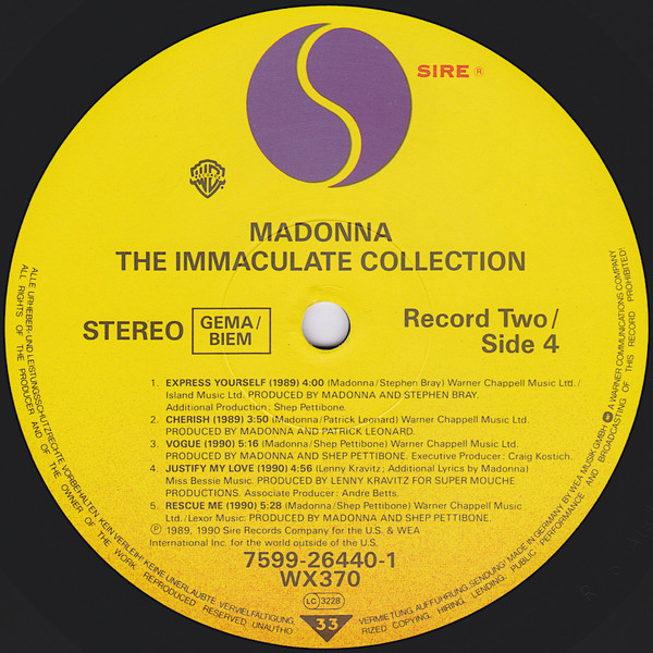 Side 2: ℗ 1985 Warner Bros. Inc. ℗ 1984, 1985, 1986, 1990