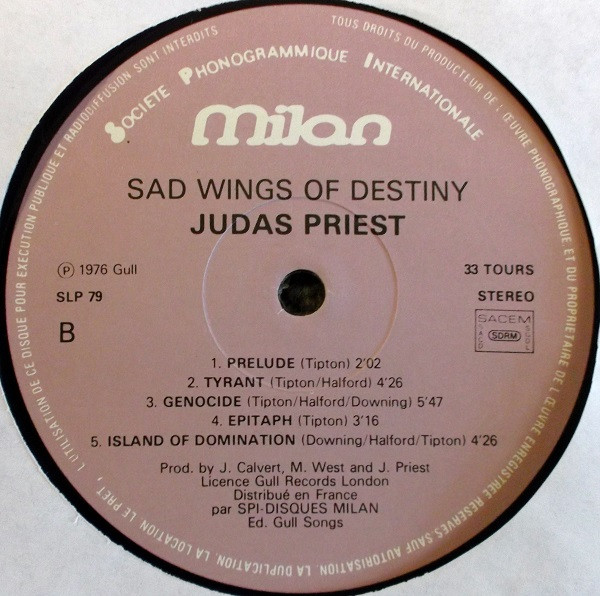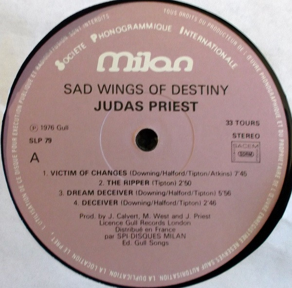 Has different center labels as Judas Priest - Sad Wings Of Destiny.