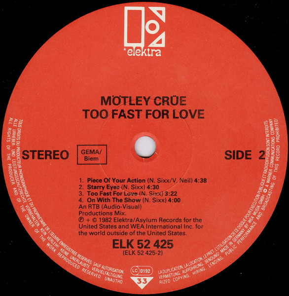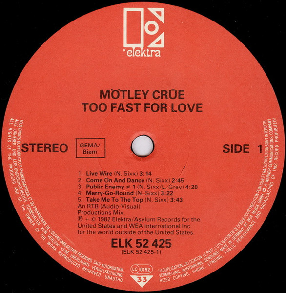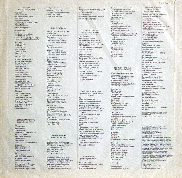 All compositions published © 1981 Warner-Tamerlane Publishing Corp. / Mötley Crüe Publishing BMI.