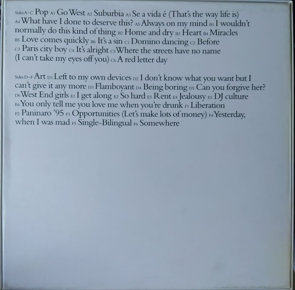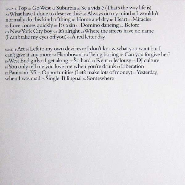 - Design, Art Direction – Farrow Design, Pet Shop Boys