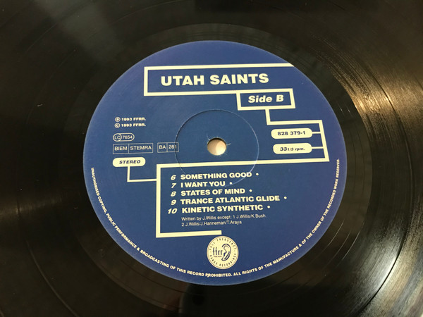 Utah Saints use samples to FREE us from the confines of popular instruments. THE sample may be a vocal phrase, 100 guitars, or everyday MACHINES and animals. These are all just instruments to us. No tape was used in the making of this album. TAKE CONTROL of the machine NOW!