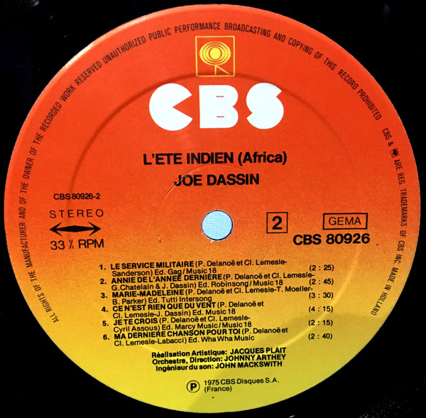 ℗ 1975 CBS Disque S.A., France.