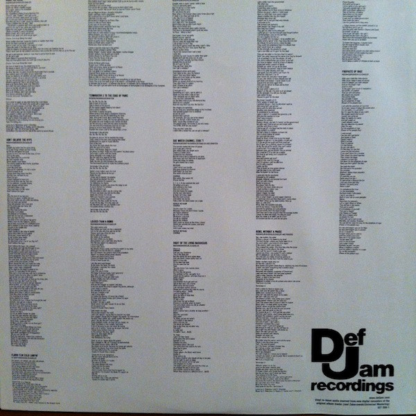 This pressing was limited and numbered. Part of the Def Jam 2000 Vinyl Re-issues Series.