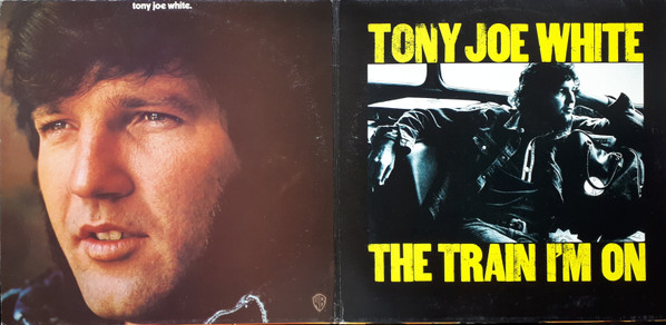 2 originals of Tony Joe White: 'Tony Joe White' (1971) and 'The Train I'm On' (1972) in gatefold cover with round sticker on front: "Sonderpreis 2 Langspielplatten DM 25.- unverbindl. Richtpreis" = "Special price 2 long playing records DM 25.- non-binding price", front covers of the single albums given on inner spread, outer spread with the painted artwork by Patrick Von Spreckelsen.