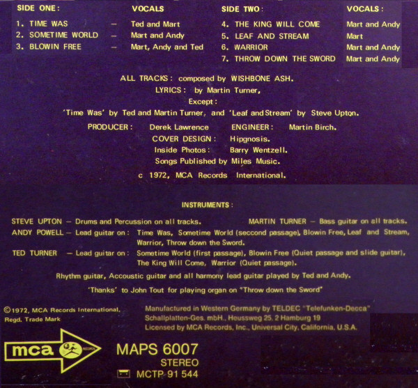 - Lyrics By – Martin Turner (2) (tracks: A1 to B1, B3, B4), Steve Upton (tracks: B2), Ted Turner (tracks: A1)