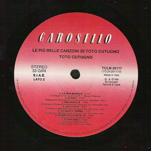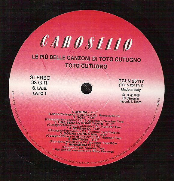 (C) & (P) 1986 by Carosello Records & Tapes