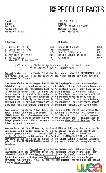 - Written-By – C Hynde* (tracks: A1 to A3, A5 to B5)