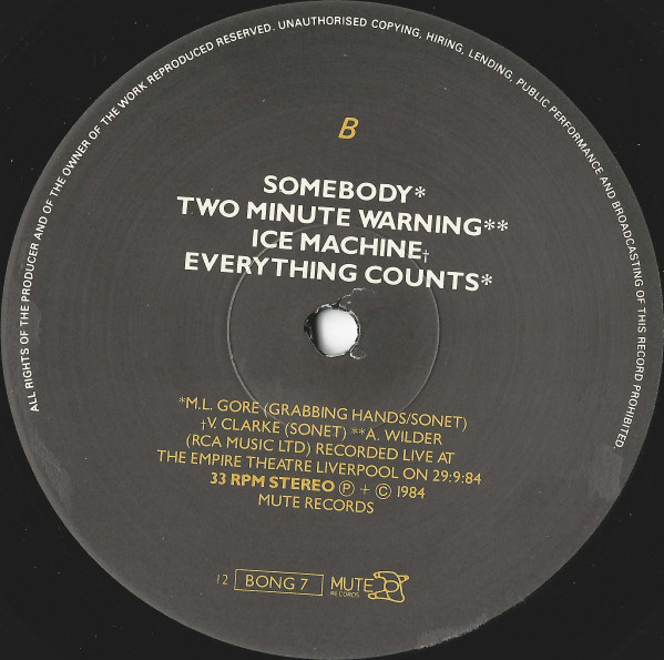 ℗ + © Mute Records 1984.