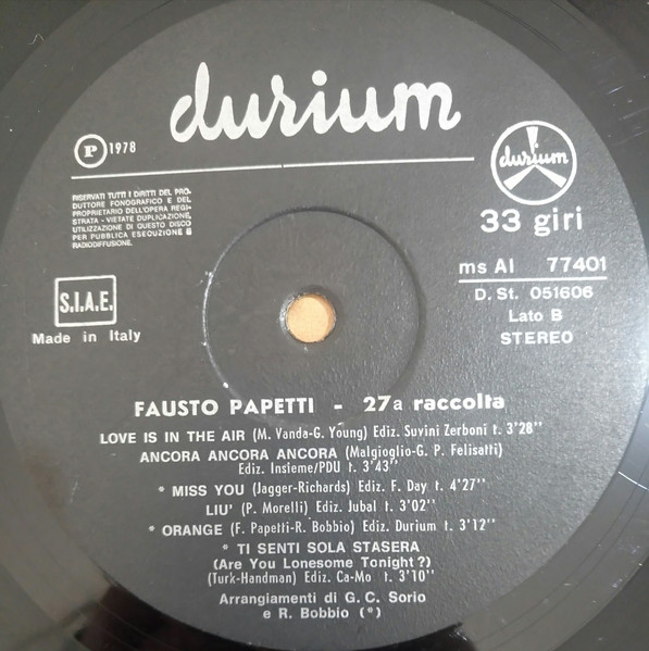 - Strings – Adalberto Munari, Agostino Severi, Alfredo D'Aquino, Amilcare Zaccagnini, Bruno Nidasio, Cesare Buzzi, Dino Tellini, Enrico Stabile, Gianni Berlendis, Loris Carletti, Pierangelo Minella, Raoul Boccaccini, Renato Riccio, Roberto Marchiò*, Sergio Almangano, Vincenzo Lo Castro, Wolfgang Kossuth