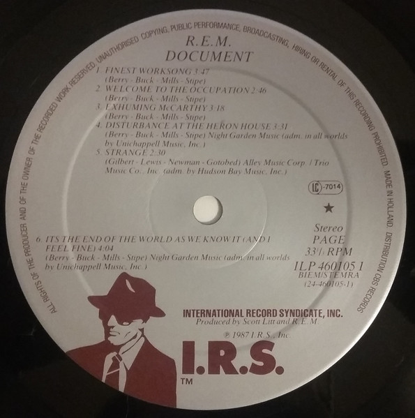 ℗ 1987 I.R.S., Inc/© 1987 I.R.S., Inc./Printed in Holland/Distribution CBS Records