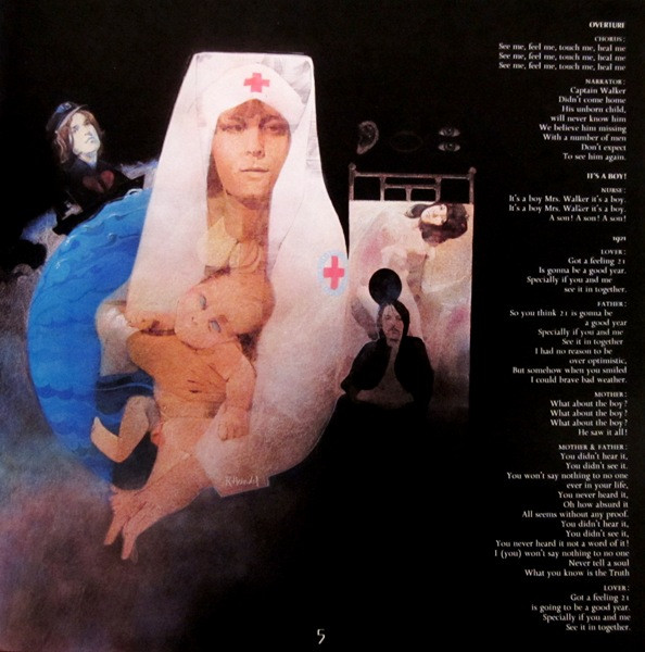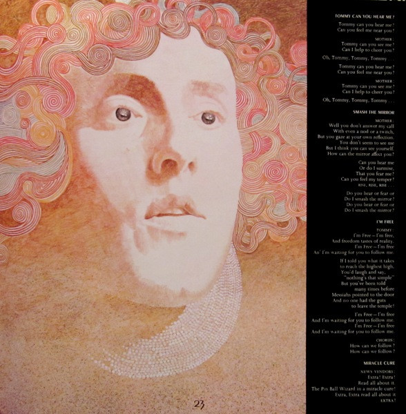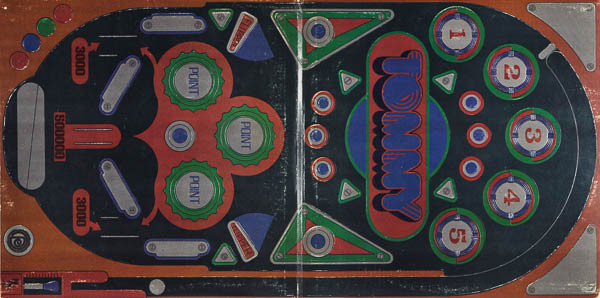 This came in a Hardboard slipcase with inner embossed gatefold sleeve. Enclosed is a 28-page 11"x11" full color booklet. "Story of Tommy" and appearance info, lyrics, and credits. Panels have color artwork and pinball machine related photos depicting story.