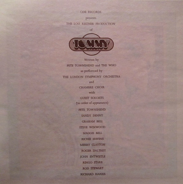 Title on spine of case "Tommy as performed by the London Symphony Orchestra and Chambre Choir with Guest Soloists"