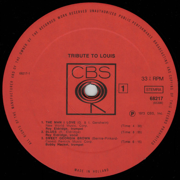 Ⓟ 1973 CBS Inc. / Manufactured by CBS Records / CBS is a Trademark of the Columbia Broadcasting System Inc. / NL printed in Holand (sleeve)