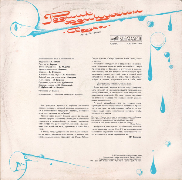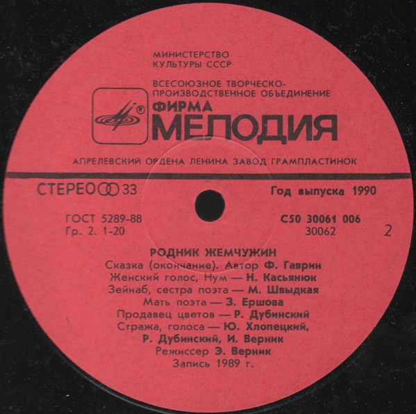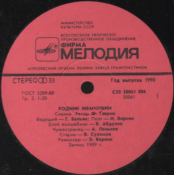 Всесоюзная студия грамзаписи. Запись 1989 г.