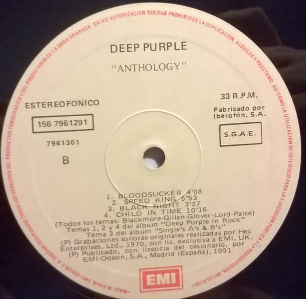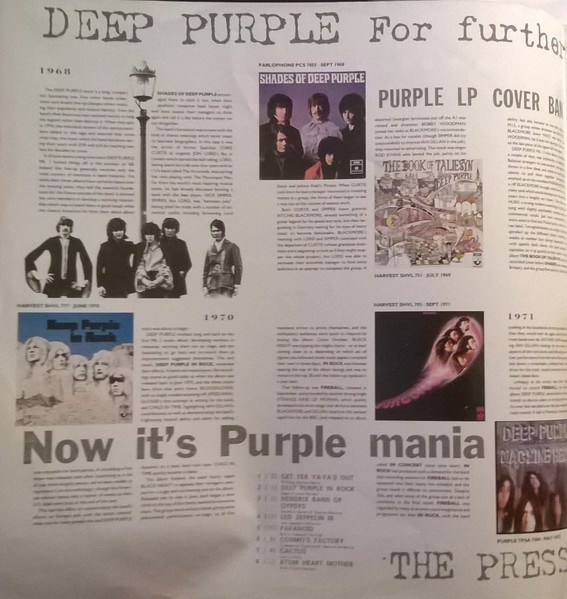 - Written-By – Covardale* (tracks: D5-F1, F3, F4), Hughes* (tracks: E-4, E5, F2, F4), Gillan* (tracks: B1-D4), Paice* (tracks: A4, B1-D4, E1, E2, E4, E5), Joe South (tracks: A1), Lord* (tracks: A2-D4, E1, E2, E4, E5), Simper* (tracks: A4), Blackmore* (tracks: A2-E3, E5, F1), Evans* (tracks: A2, A3, A5), Glover* (tracks: B1-D4), Bolin* (tracks: F2, F3)