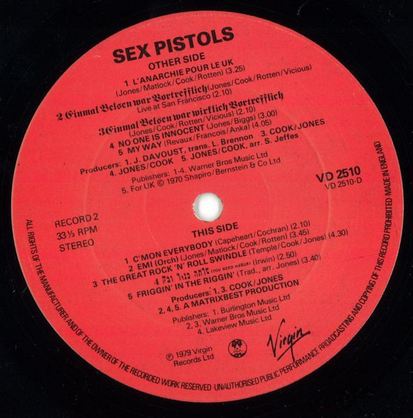 - Written-By – Matlock* (tracks: A1, A5, A7, C1, D2), Rotten* (tracks: A1, A5, A7, C1 to C3, D2), Cook* (tracks: A1, A5, A7, B1, B5, C1 to C4, D2, D3), Biggs* (tracks: A5, C4), Vicious* (tracks: C2, C3), Jones* (tracks: A1, A5, A7, B1, B5, C1 to C4, D2, D3)