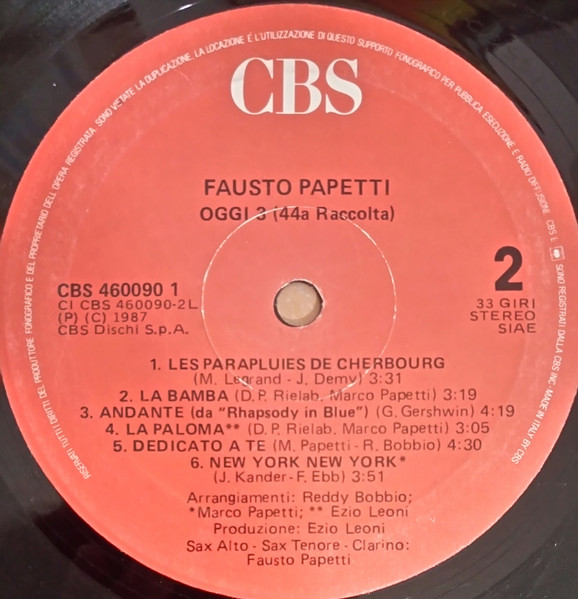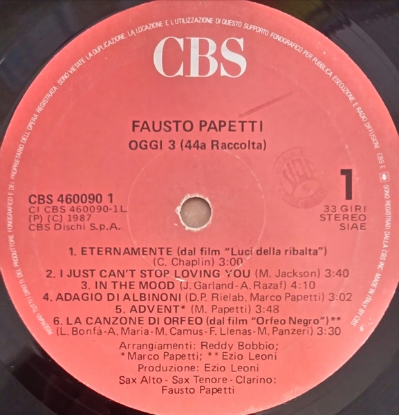 - Alto Saxophone, Tenor Saxophone, Clarinet – Fausto Papetti