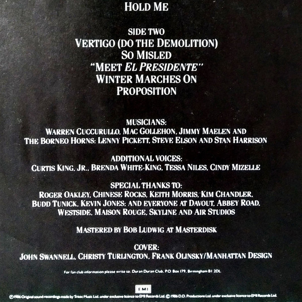 © 1986 D.D. Productions Ltd. under exclusive license to EMI Records Ltd.