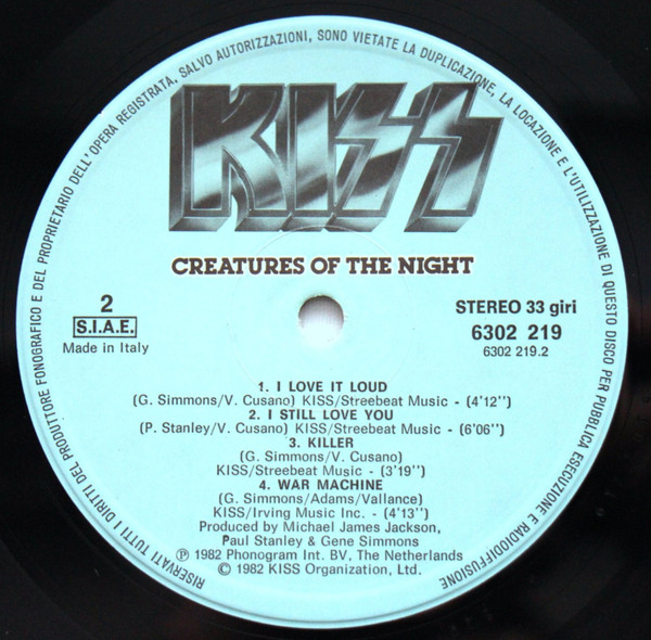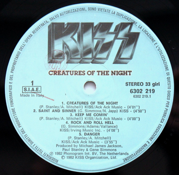 - Written-By – A. Mitchell* (tracks: A1, A3, A5), Adams* (tracks: A4, B4), G. Simmons* (tracks: A2, A4, B1, B3, B4), Vallance* (tracks: A4, B4), M. Japp* (tracks: A2), P. Stanley* (tracks: A1, A3, A5, B2), V. Cusano* (tracks: B1, B2, B3)