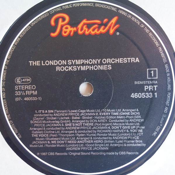 ℗ 1987 CBS Records/Original Sound Recording made by CBS Records/© 1987 CBS Inc., Germany/Printed in Holland/Imprimé en Hollande/Distribution CBS Records/CBS Disques S.A.