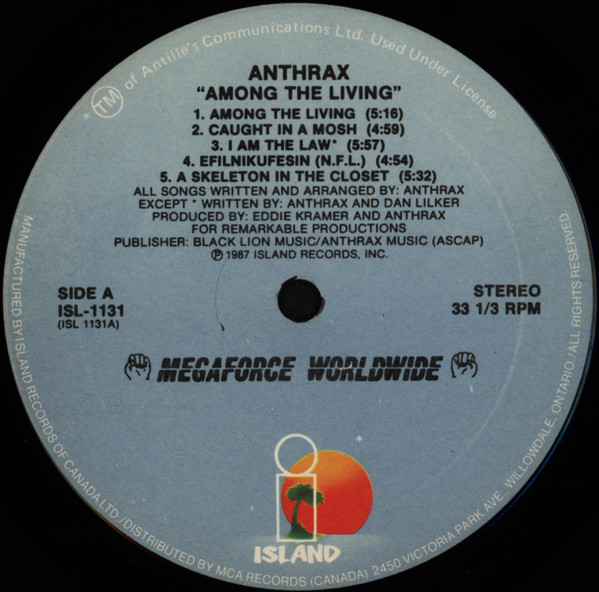 All lyrics © 1986 Black Lion Music/Anthrax Music (ASCAP). Agency U.S., I.C.M. Agency U.K., Europe, Japan; Fair Warning. Merchandise U.S., Great Southern. Merchandise U.K., Europe; Bravado.
