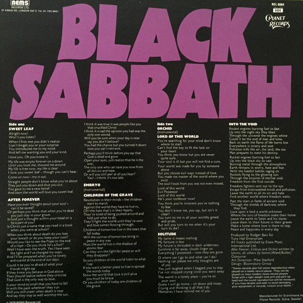 Manufactured for Scandinavia by Planet Records, Solna, Sweden