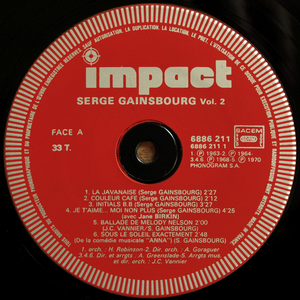 Record 2 : Previously released as 6886 211 Serge Gainsbourg Volume 2