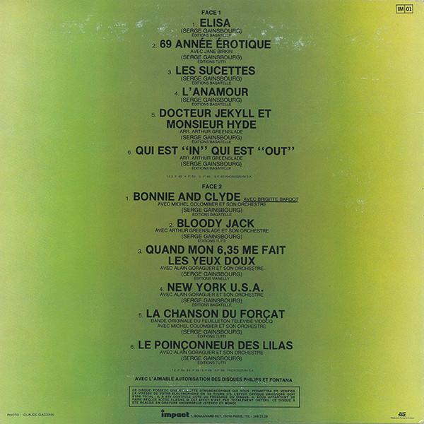 - Music By, Lyrics By, Vocals – Serge Gainsbourg