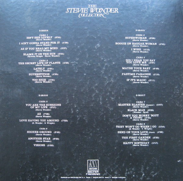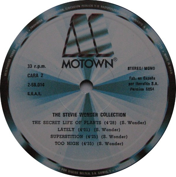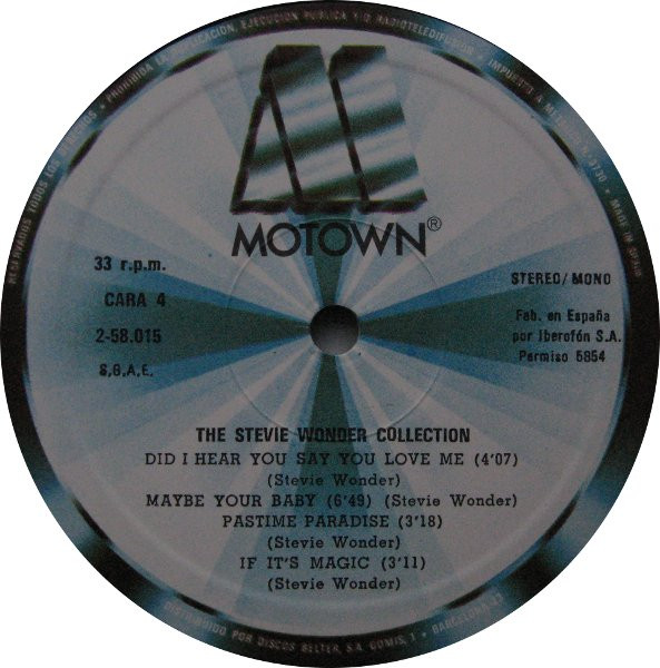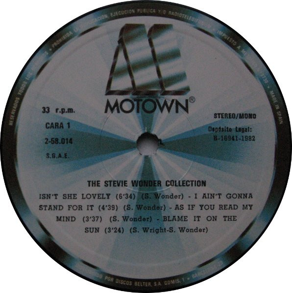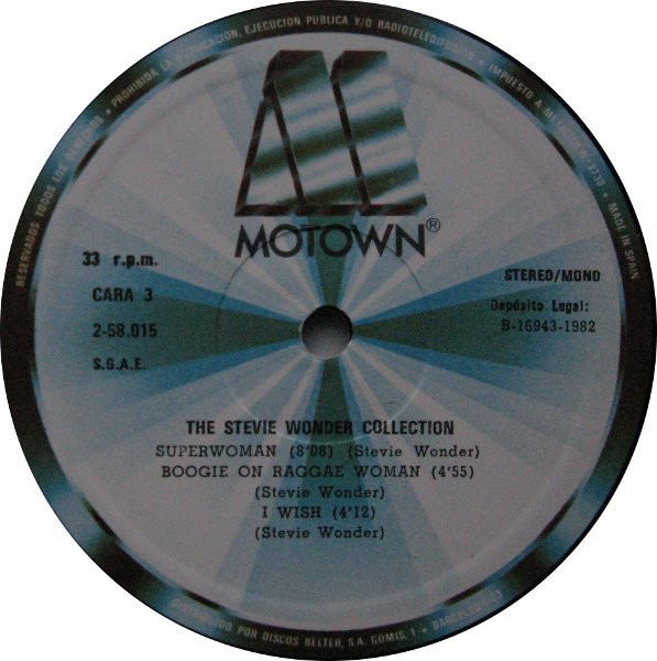 Very similar to Stevie Wonder - The Stevie Wonder Collection. Some differences on label's text types. Most obvious difference is how text "Stereo/Mono" is written on labels.