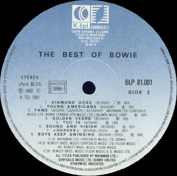 B1: Mainman Ltd./Chrysalis Music Ltd./Bowie (P) 1974