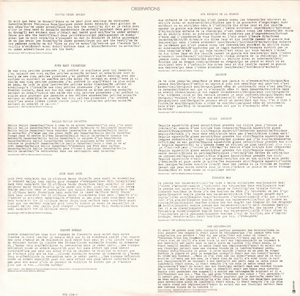 - Written-By – Gainsbourg* (tracks: A1 to A4, B1 to B4)