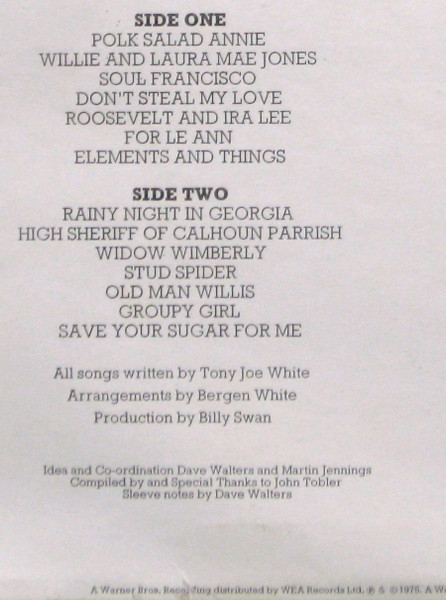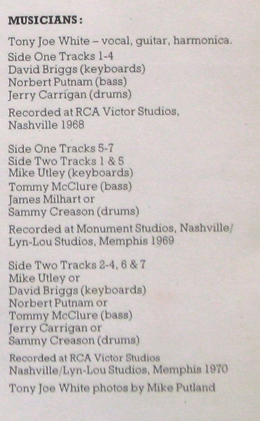 Compiled from Tony Joe White's first three albums when he was with Monument Records (1968 to 1970).