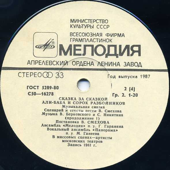 - Recorded By – Всесоюзная Студия Грамзаписи