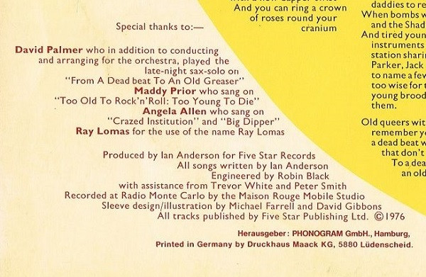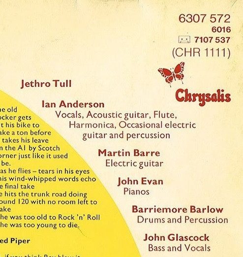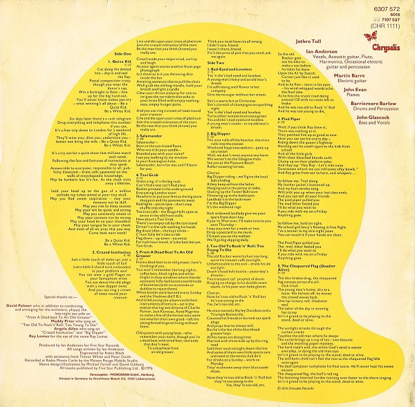 - Producer, Written-By, Vocals, Acoustic Guitar, Flute, Electric Guitar [Occasional], Harmonica, Percussion – Ian Anderson