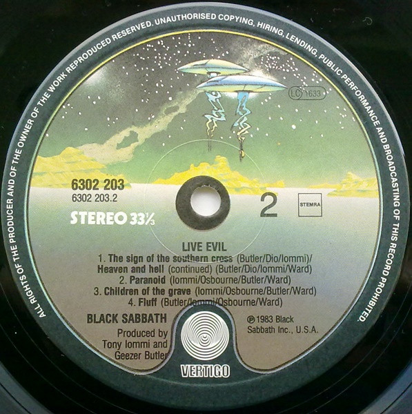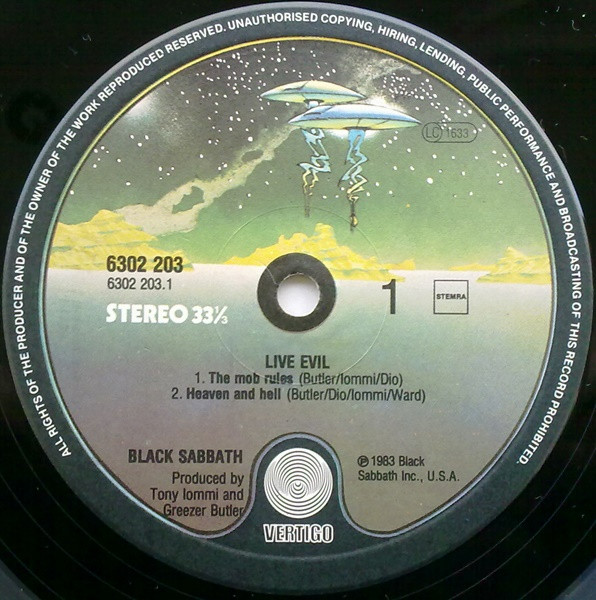 ℗1982 Black Sabbath Inc., USA, on all labels.