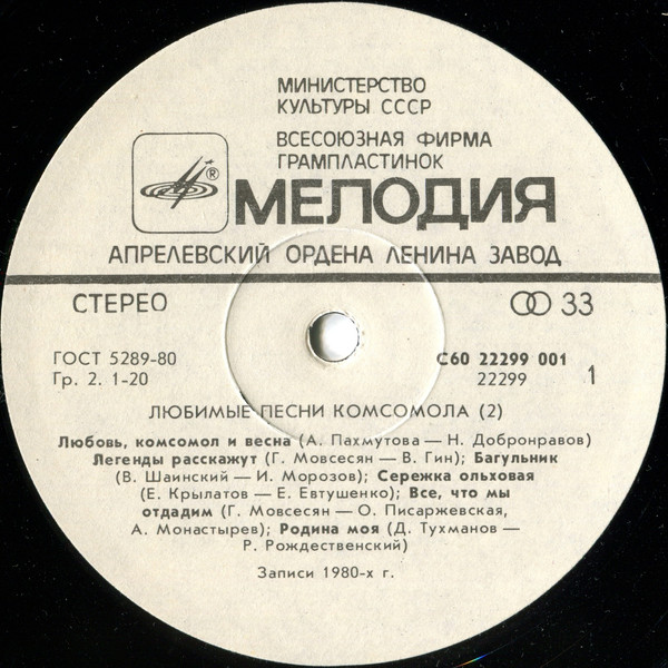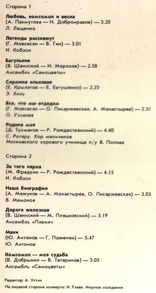 - Recorded At – Всесоюзная Студия Грамзаписи