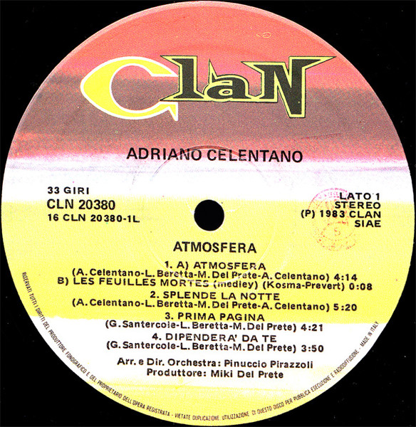 Different labels layout than release Adriano Celentano - Atmosfera.