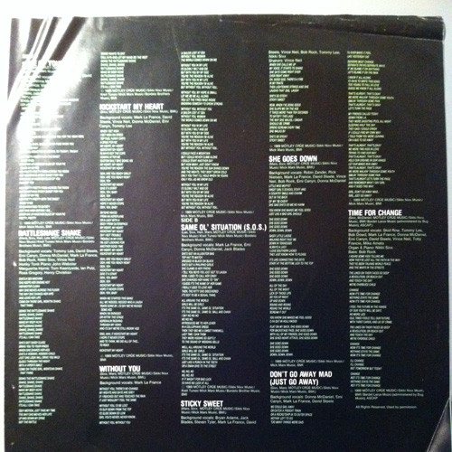 - Backing Vocals – Bob Rock (tracks: A2, A4,), David Steele (4) (tracks: A2 to A5, B2 to B5), Donna McDaniel (tracks: A2 to A4, B1, B3 to B5), Emi Canyn (tracks: A2 to A4, B1, B3 to B5), Mark La France*, Vince Neil (tracks: A2, A4, B2, B3, B5)