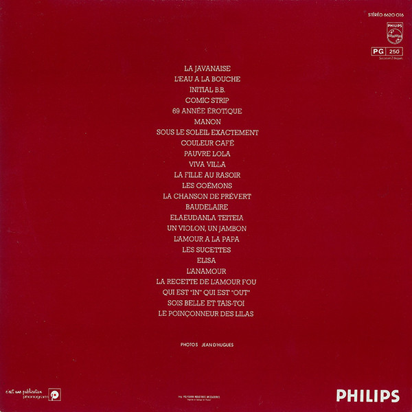 - Vocals – Serge Gainsbourg