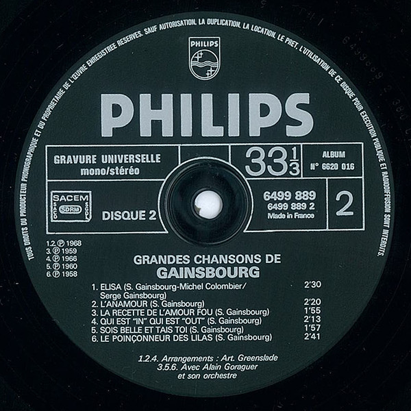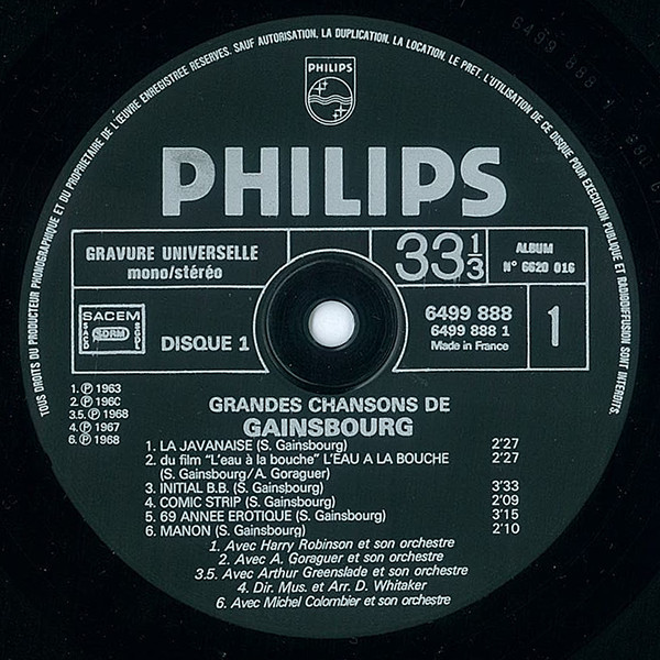 Music By – A. Goraguer*, S. Gainsbourg*