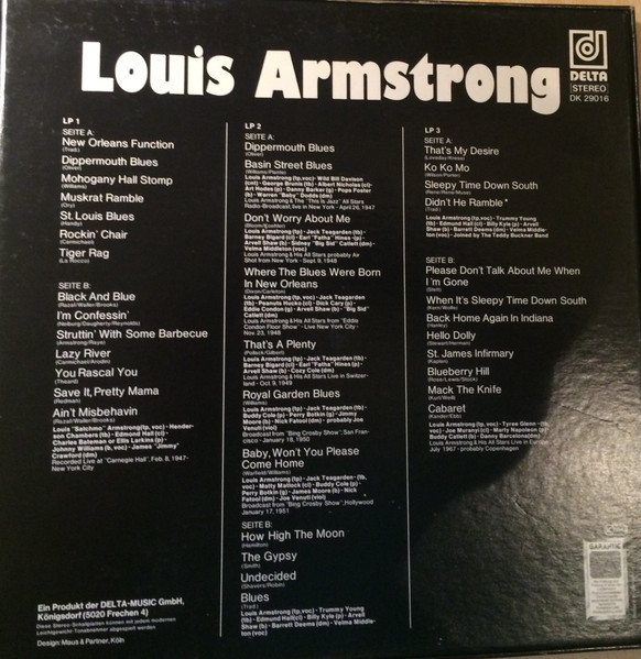 - Trumpet – Louis Armstrong (tracks: A1 to F8)