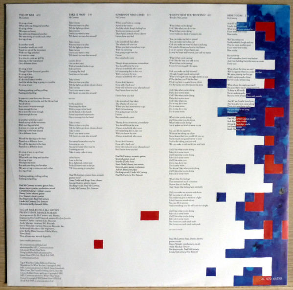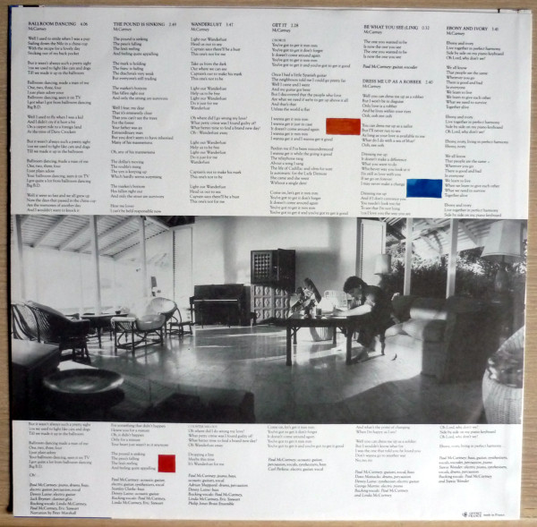 - Backing Vocals – Eric Stewart (tracks: A1 to A4, B1 to B3), Linda McCartney (tracks: A1 to A4, B1 to B3, B6), Paul McCartney (tracks: A1 to A4, B1 to B3, B6, B7), Philip Jones Brass Ensemble (tracks: B3), Stevie Wonder (tracks: B7)
