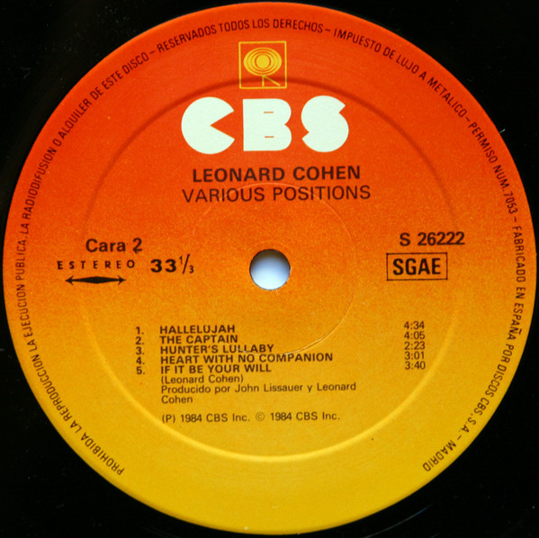 Close to Leonard Cohen - Various Positions but with a slighty different rim text: here is printed "Impuesto de Lujo a Metalico - Permiso num. 7053"