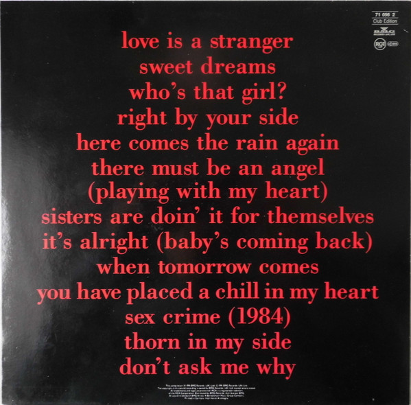 | A2 | Sweet Dreams (Are Made Of This) | 4:50 | |