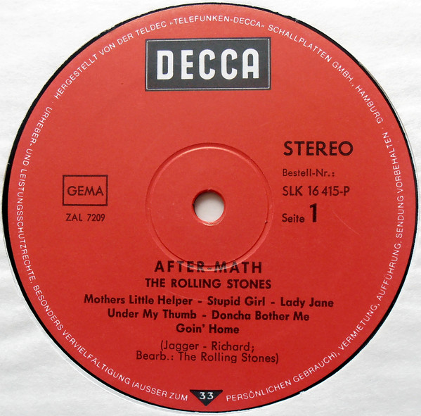 Later print of the German 1966-release (SLK 16415-P) with square DECCA-Logo, black letters on red label, royal-sound-embleme on cover backside (original first pressings: golden on claret with royal-sound-embleme and oval DECCA-Logo on the label).