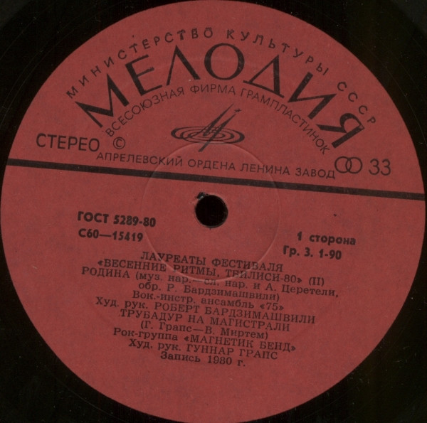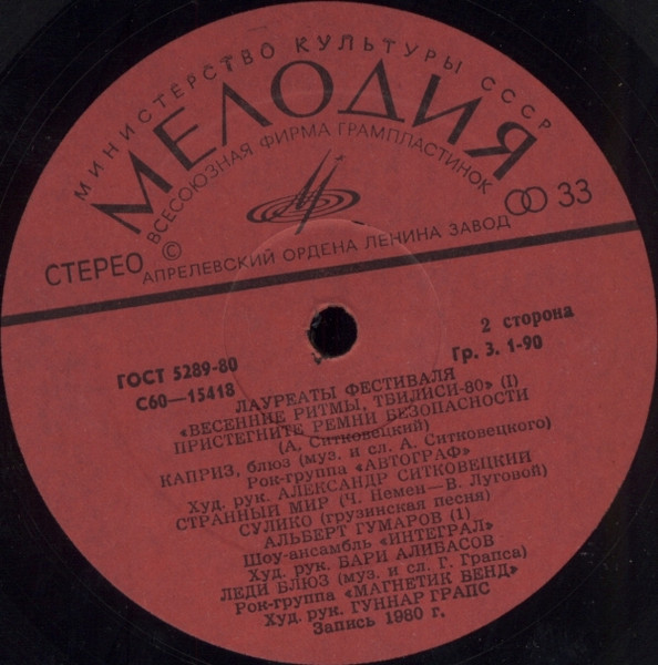 Transliteration: Laureaty Festivalya «Vesenniye Ritmy, Tbilisi-80»