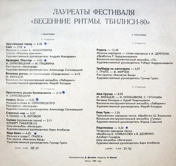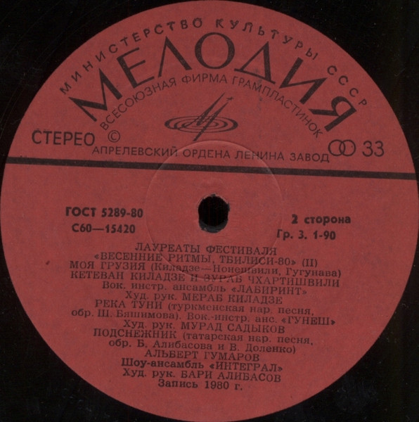 | Вокально-инструментальный Ансамбль «Лабиринт»*– | Весенние Ритмы, Из Композиции «Сакартвело» | 6:15 | |